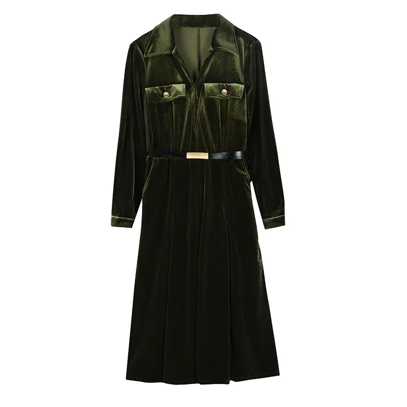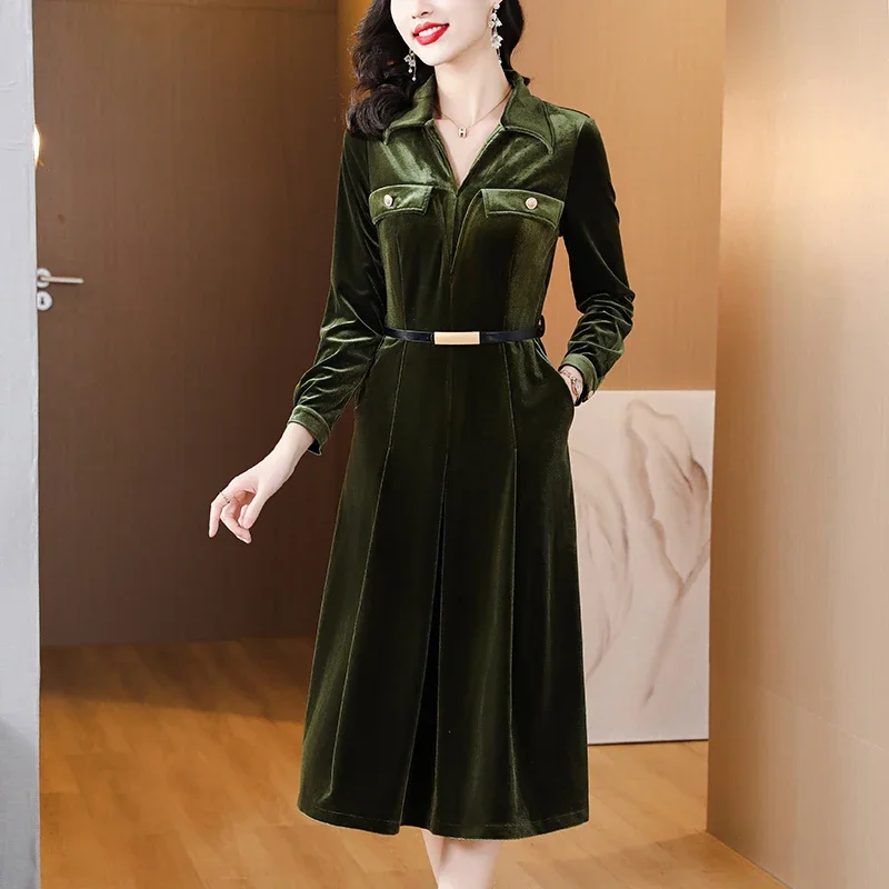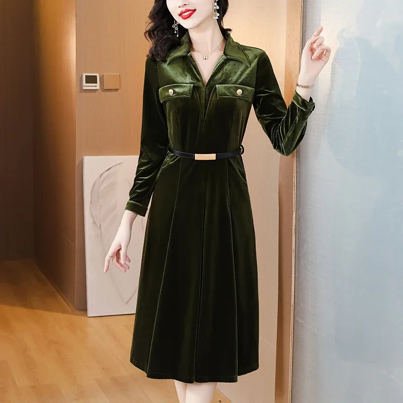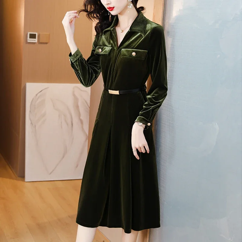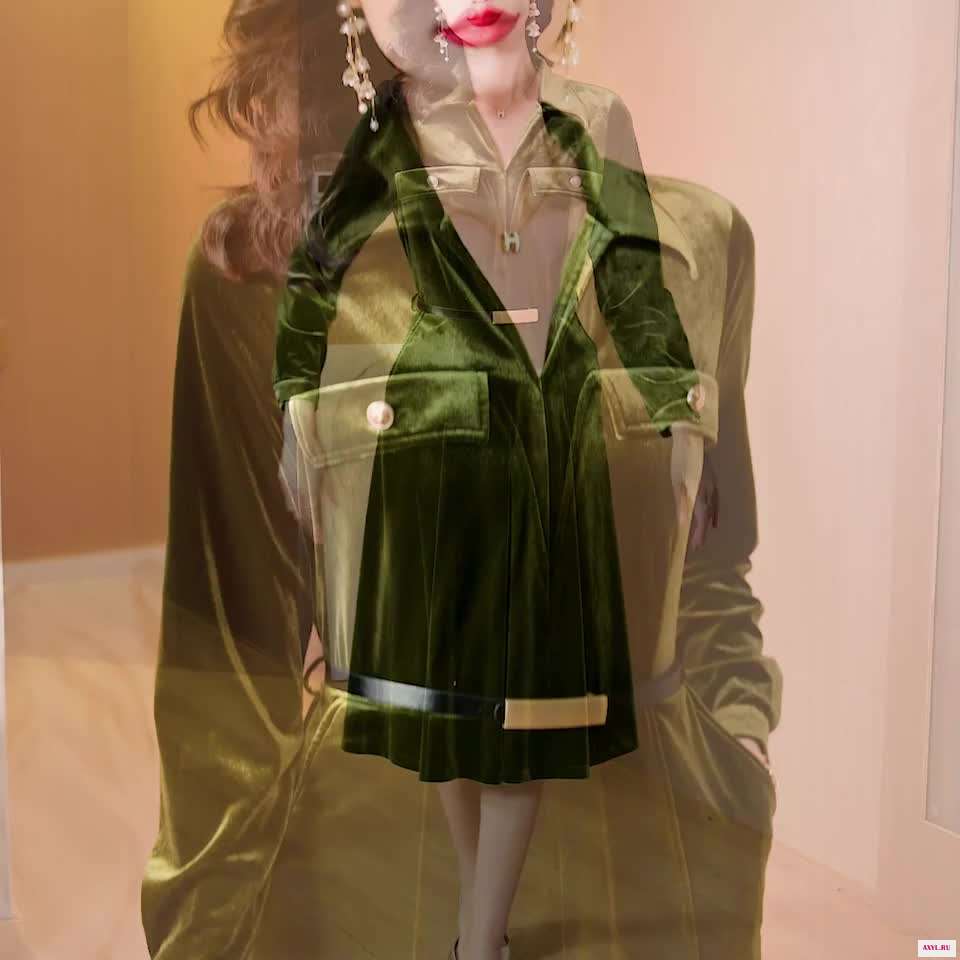 Отзывы о Осень 2023 золотое бархатное элегантное винтажное однотонное платье миди для - 71005007935959487